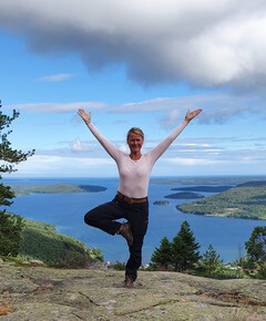 Jag tycker om att yoga lugnt och inkännande. Så jag får en upplevelse i vad som händer i min kropp och att andetaget hela tiden får följa mig som en följeslagare genom kroppens rörelsen.